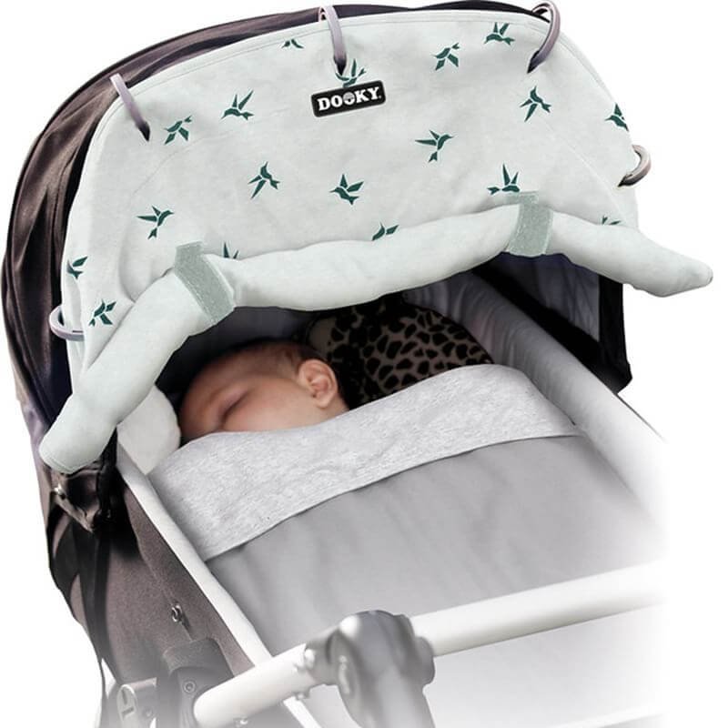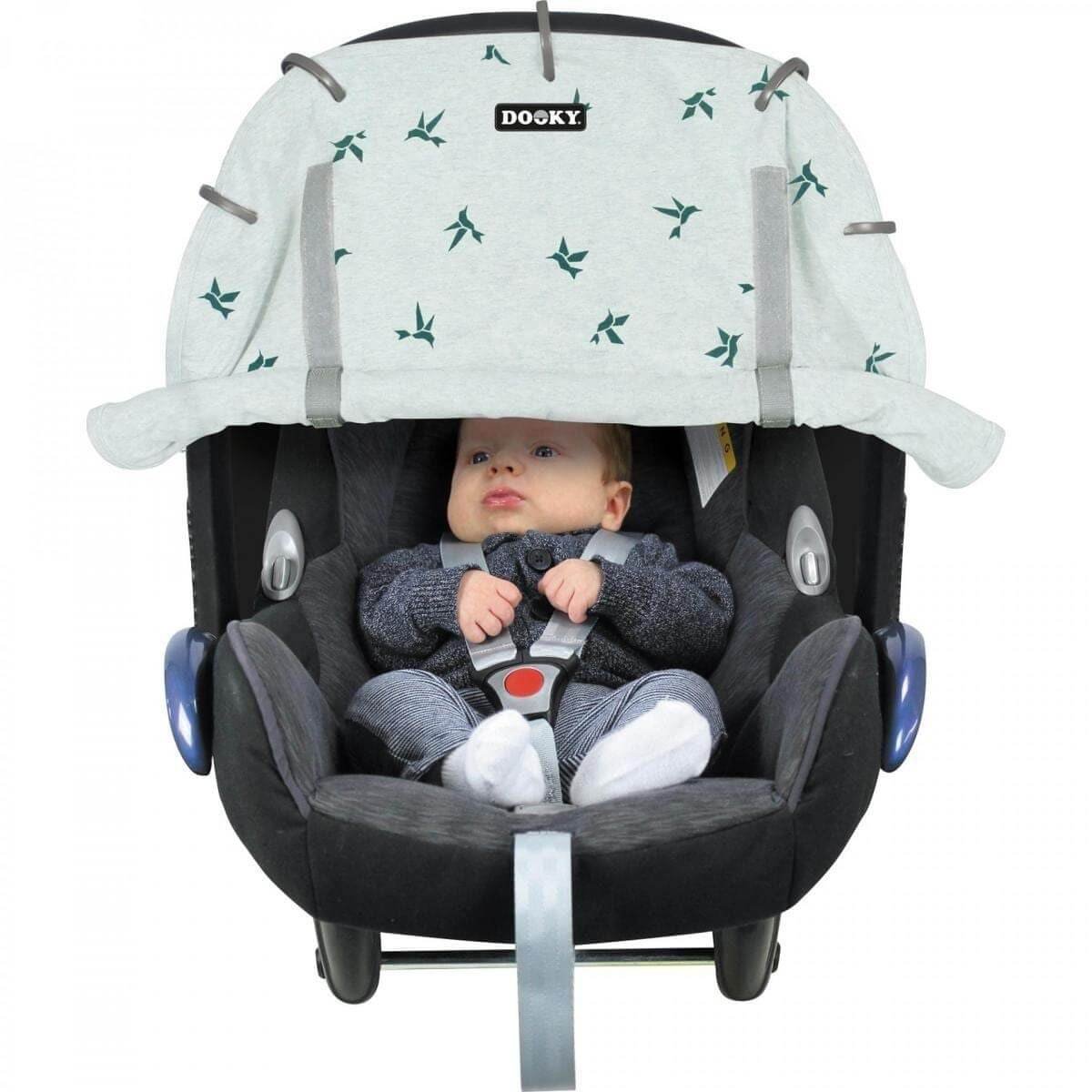 Σκίαστρο καροτσιού της εταιρείας Dooky με προστασία UPF40+ Origami Swallow Grey Jade για να αποτρέψετε την υπερθέρμανση του μωρού στο καρότσι και το κάθισμα του αυτοκινήτου και να το προστατέψετε από τις επικίνδυνες ακτινοβολίες του ηλίου!