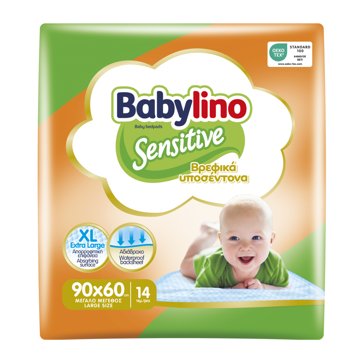Βρεφικά υποσέντονα Babylino Sensitive για χρήση εντός και εκτός σπιτιού. Προσφέρουν υγιεινή κατά την αλλαγή της πάνας, ενώ εμποδίζουν ανεπιθύμητες διαρροές, χάρη στην Extra Large απορροφητική τους επιφάνεια. Ιδανικά και για χρήση κατά τη διάρκεια της νύχτας ή όταν το παιδί βρίσκεται στο στάδιο εκμάθησης της τουαλέτας.