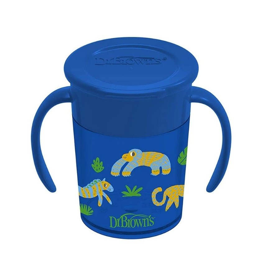 Ειδικά διαμορφωμένο κύπελλο Dr Brown’s Cheers 360° με λαβές 6m+ 200ml μπλε που παρέχει άνεση στο παιδί για να πίνει από όλες τις πλευρές χωρίς διαρροές. Η βαλβίδα σιλικόνης Sip-and-See επιτρέπει στο μωρό να βλέπει στο εσωτερικό του χωρίς να χυθεί, για αληθινή μάθηση χωρίς διαρροή.