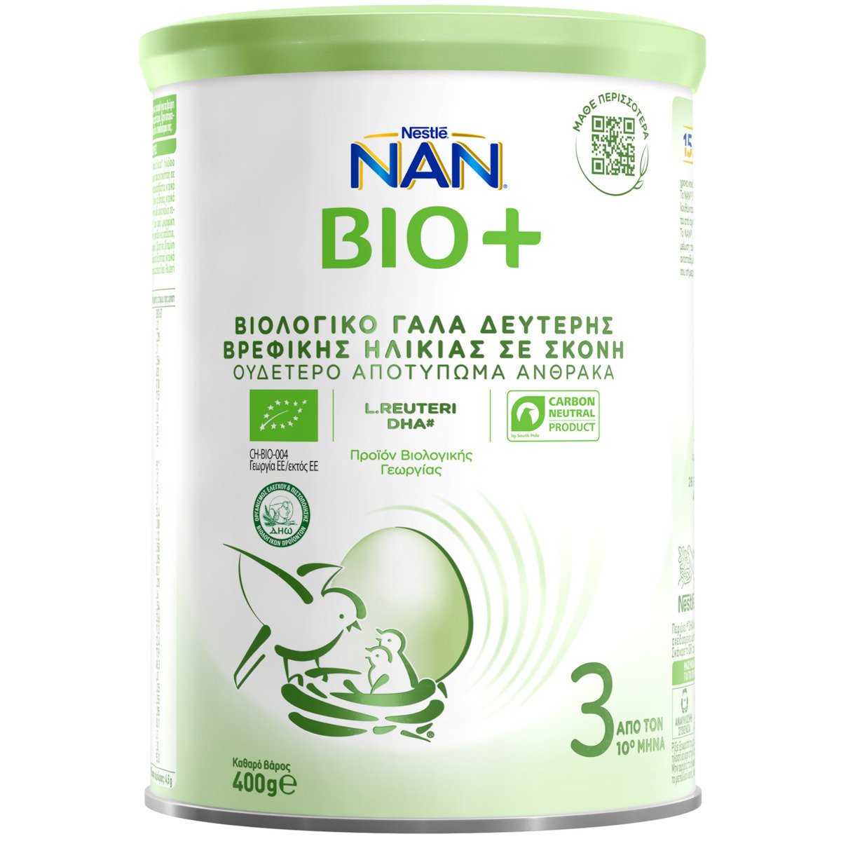 Το NAN BIO+ 3 είναι ένα επιστημονικά σχεδιασμένο βιολογικό βρεφικό γάλα το οποίο παράγεται ακολουθώντας τις αυστηρότερες Ευρωπαϊκές και Ελβετικές προδιαγραφές, με βιολογικό γάλα που προέρχεται από αγελάδες που μεγαλώνουν ελεύθερες στην ανοιχτή ύπαιθρο.