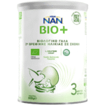 Βρεφικό γάλα σε σκόνη Nestle Nan Bio+ 3, 2ης βρεφικής ηλικίας, με βιολογικό γάλα από αγελάδες που μεγαλώνουν στην ανοιχτή ύπαιθρο και τρέφονται με βιολογικές τροφές, κατάλληλο για υγιή βρέφη από τον 12ο μήνα, το οποίο σε συνδυασμό με επαρκείς συμπληρωματικές τροφές, σύμφωνα με τις συμβουλές του παιδιάτρου, προσφέρει στο μωρό σημαντικά θρεπτικά συστατικά για σωστή ανάπτυξη.