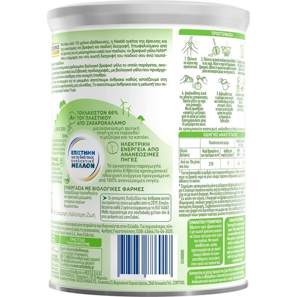Βρεφικό γάλα σε σκόνη Nestle Nan Bio+ 3, 2ης βρεφικής ηλικίας, με βιολογικό γάλα από αγελάδες που μεγαλώνουν στην ανοιχτή ύπαιθρο και τρέφονται με βιολογικές τροφές.