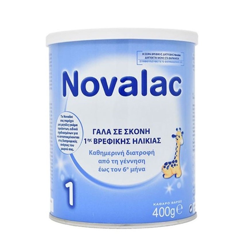 Γάλα σε σκόνη Novalac 1 400g 1ης βρεφικής ηλικίας για καθημερινή διατροφή, κατάλληλο από τη γέννηση έως τον 6ο μήνα του βρέφους, που εξασφαλίζει την υγιή ανάπτυξη των βρεφών.