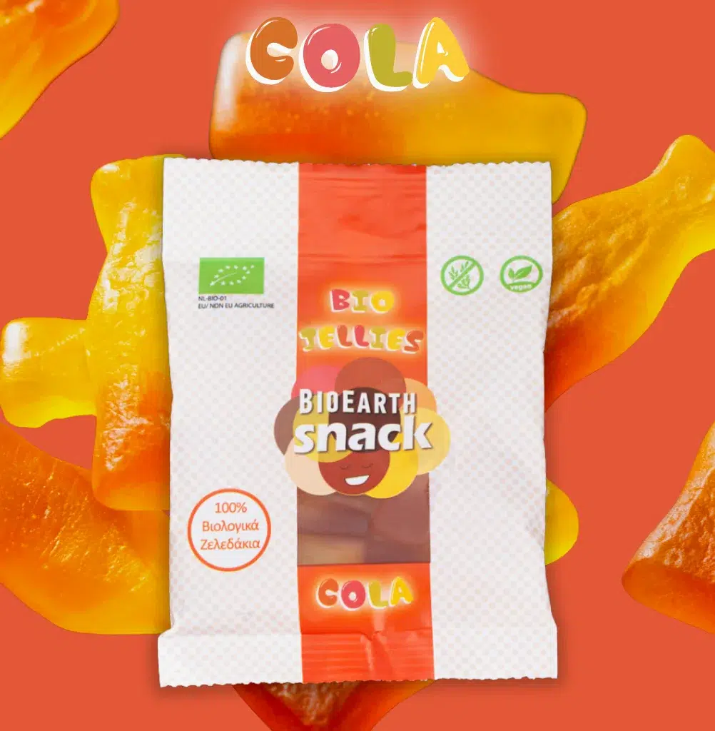 Νόστιμα, λαχταριστά ζελεδάκια-μπουκαλάκια με απίθανη γεύση Cola! Τα Biojellies Cola είναι 100% βιολογικά, χωρίς Γλουτένη, χωρίς τεχνητά αρώματα, απαλλαγμένα από τα κύρια αλλεργιογόνα συστατικά!