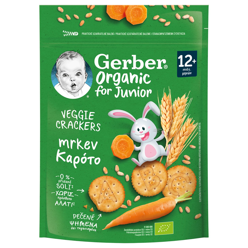 Gerber – Organic for Junior Κράκερ Δημητριακών Καρότο 100gr +12μηνών