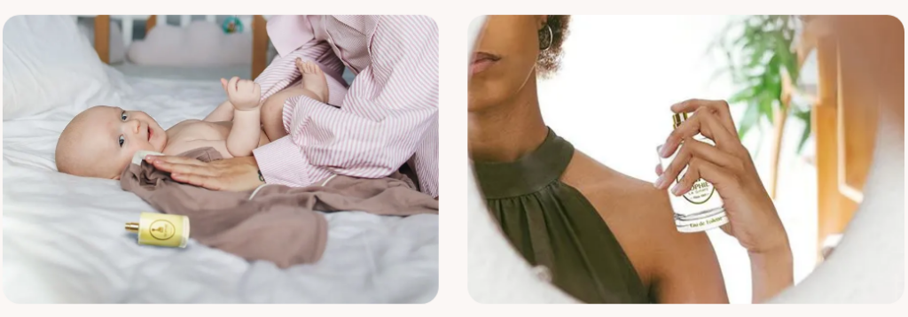 • Ένα άρωμα που μπορεί να χρησιμοποιηθεί από τη γέννηση για να αρωματίζεται απαλά τα μαλλιά του μωρού, το σώμα, τα μικρά χέρια και τα πόδια του μωρού, καθώς και τα ρούχα και το μαξιλάρι του.