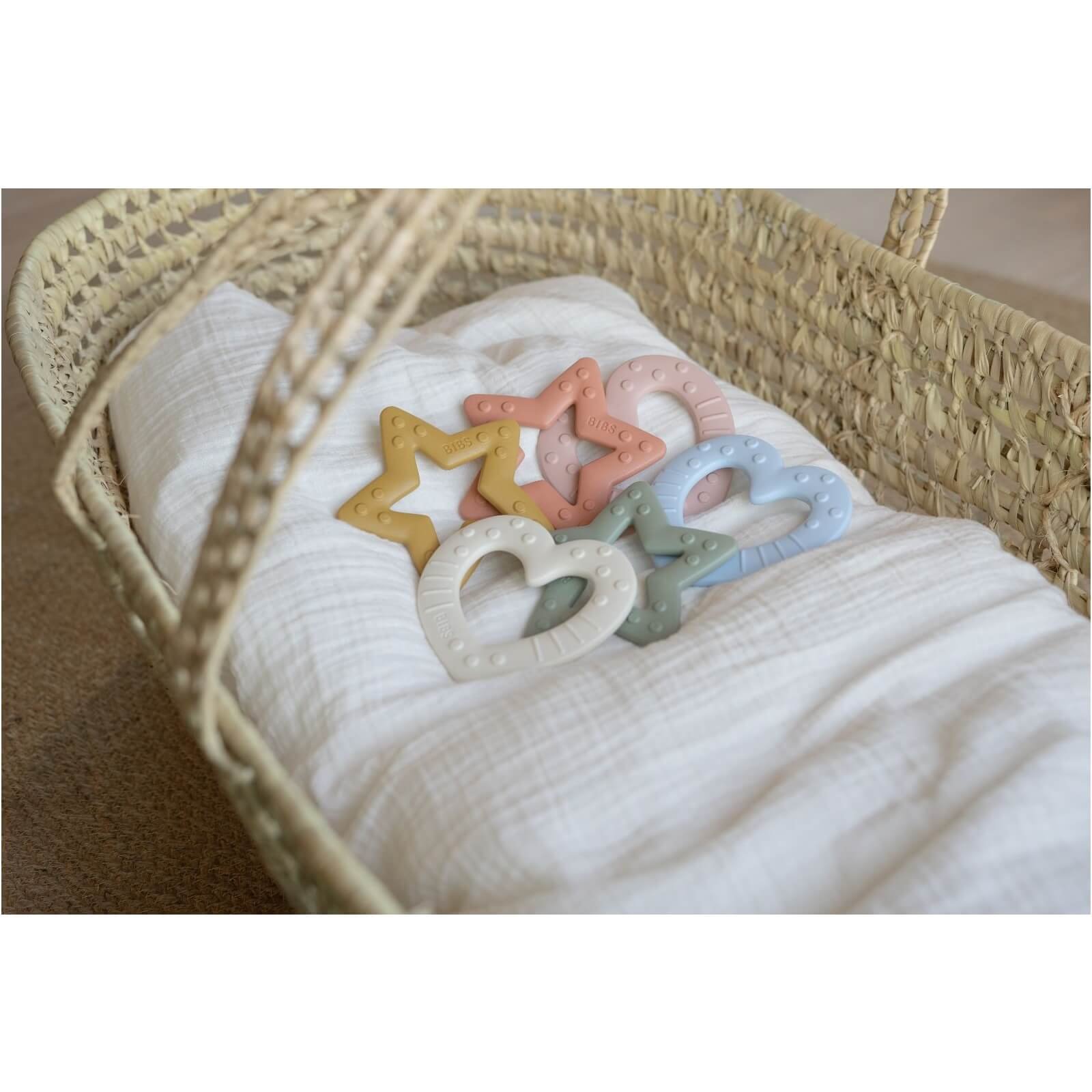 Μασητικό Οδοντοφυΐας Bitie Star Baby Blue της Bibs με διάφορες υφές που παρέχουν καταπράυνση και ανακούφιση του πόνου των ούλων όταν το μωρό βγάζει δοντάκια. Το μασητικό παιχνίδι συμβάλει επίσης στην τόνωση των αισθήσεων και των λεπτών κινητικών δεξιοτήτων του μωρού, ιδανικό για να πιάνουν τα μικρά χεράκια.