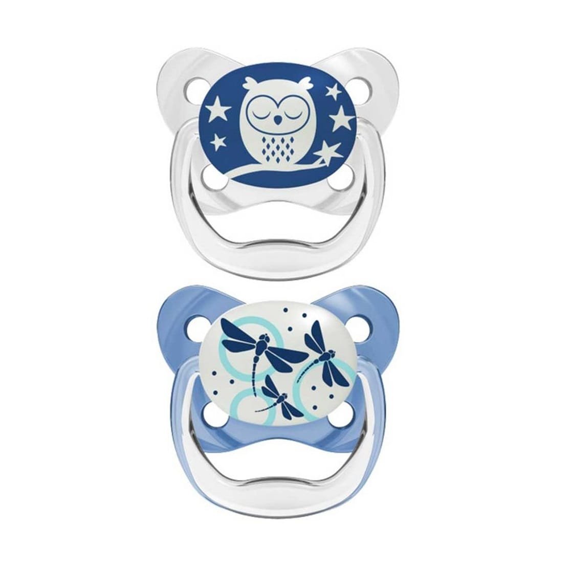 Πιπίλα νυκτός πεταλούδα ορθοδοντική Dr Brown’s Prevent 0-6m Μπλε 2 τεμάχια που φωσφορίζει για να τη βλέπετε ευκολότερα στο σκοτάδι, σχεδιασμένη ώστε να αποτραπούν οδοντιατρικά προβλήματα.