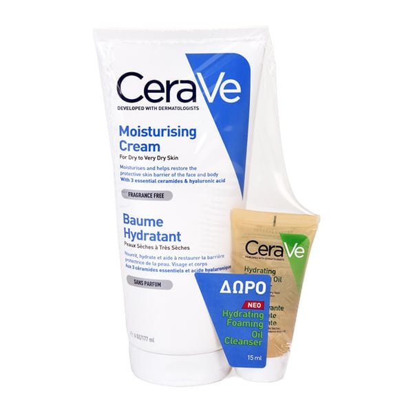 CeraVe – Moisturising Cream Ενυδατική Κρέμα για Ξηρό/Πολύ Ξηρό Δέρμα 177ml & Δώρο Hydrating Foaming Oil Cleanser 15ml