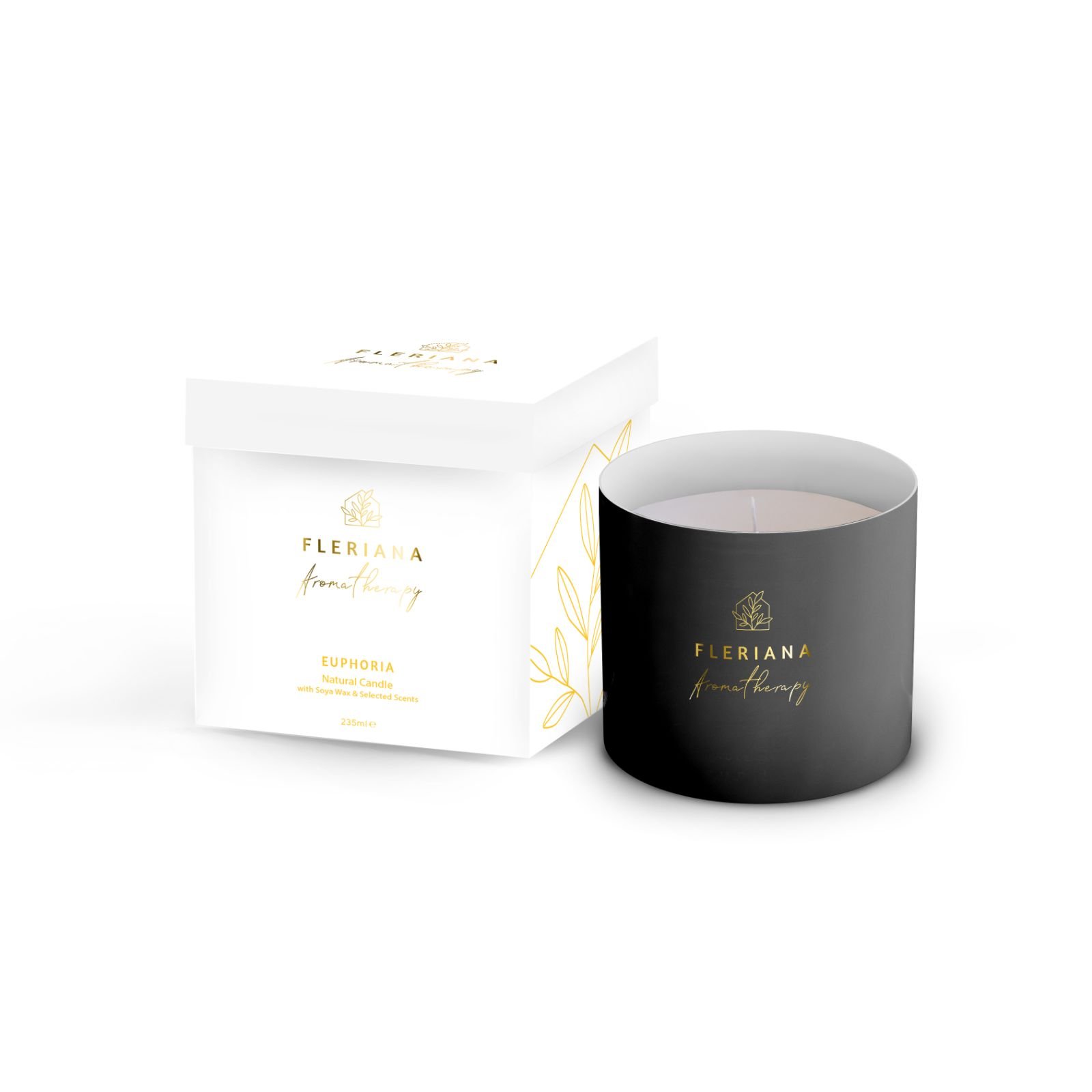 Αρωματικό κερί σόγιας Euphoria Aromatherapy της Fleriana 235ml που βοηθά στη μείωση του άγχους, στη βελτίωση της διάθεσης και αυξάνει τα επίπεδα ενέργειας. Η αρωματοθεραπεία εδώ και πολλά χρόνια χρησιμοποιεί φυσικά αρωματικά αιθέρια έλαια που ενισχύουν τόσο τη σωματική όσο και την ψυχική υγεία.
